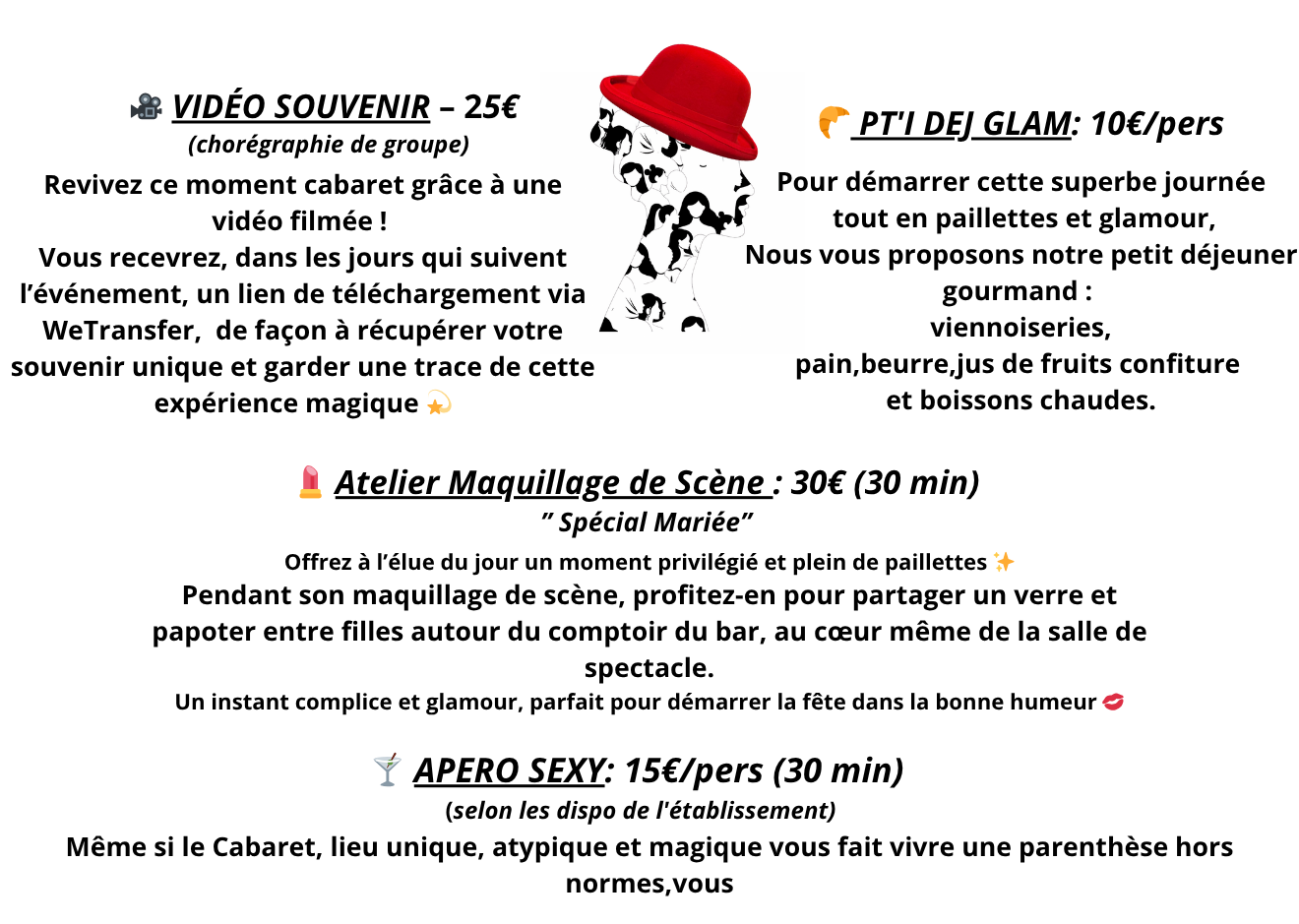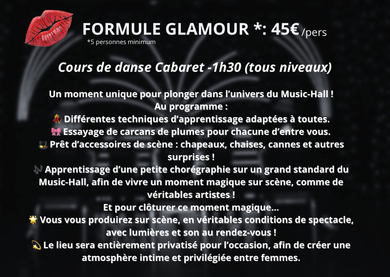 - Formule Glamour : 45€ / personne